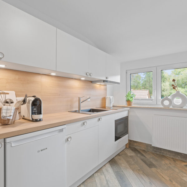 Die voll ausgestattete Küche mit Spüle, Herd, Backofen/Mikrowelle, Kühlschrank, Kaffeemaschine und Wasserkocher lässt keine Wünsche offen. Der zusätzliche Esstisch lädt zum gemeinsamen Essen ein, während der komfortable Sessel mit Leselampe einen perfekten Rückzugsort für erholsame Momente bietet. Das zeitlose skandinavische Design und die hochwertige Ausstattung sorgen für einen unvergesslichen Aufenthalt und lassen Sie die Hektik des Alltags vergessen.