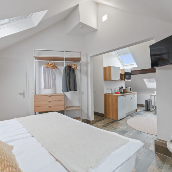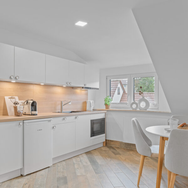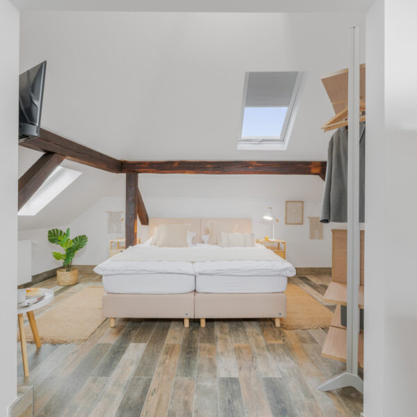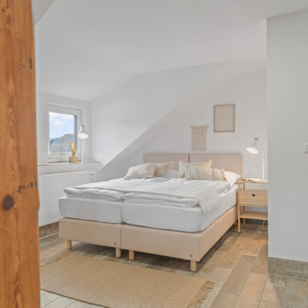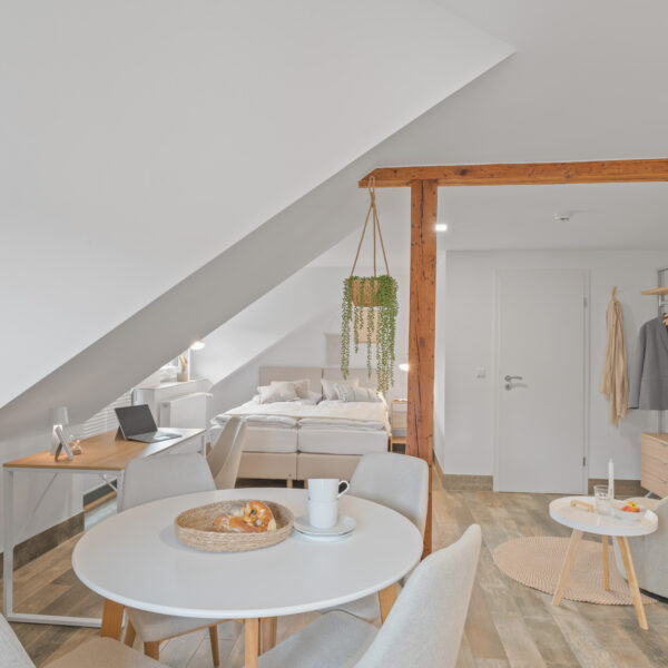Genießen Sie den Luxus und die Großzügigkeit unserer 28 m² Apartments im scandi Stil, die Platz für bis zu drei Erwachsene bieten.