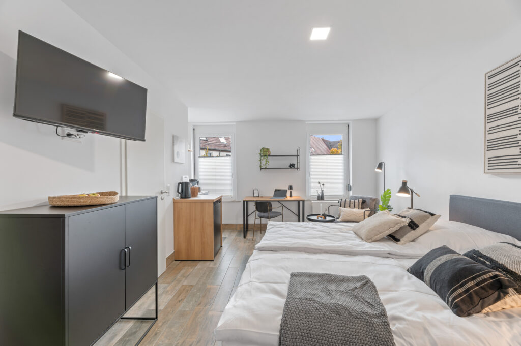 Genieße Deinen Aufenthalt in unseren modernen Business Apartments! Ob nur einige Wochen oder für ein Jahr - wir bieten Dir die perfekte Alternative zu Hotelzimmer oder Pension. Keines der Zimmer gleicht dem anderen und trotzdem haben alle ihren Charme und Stil.